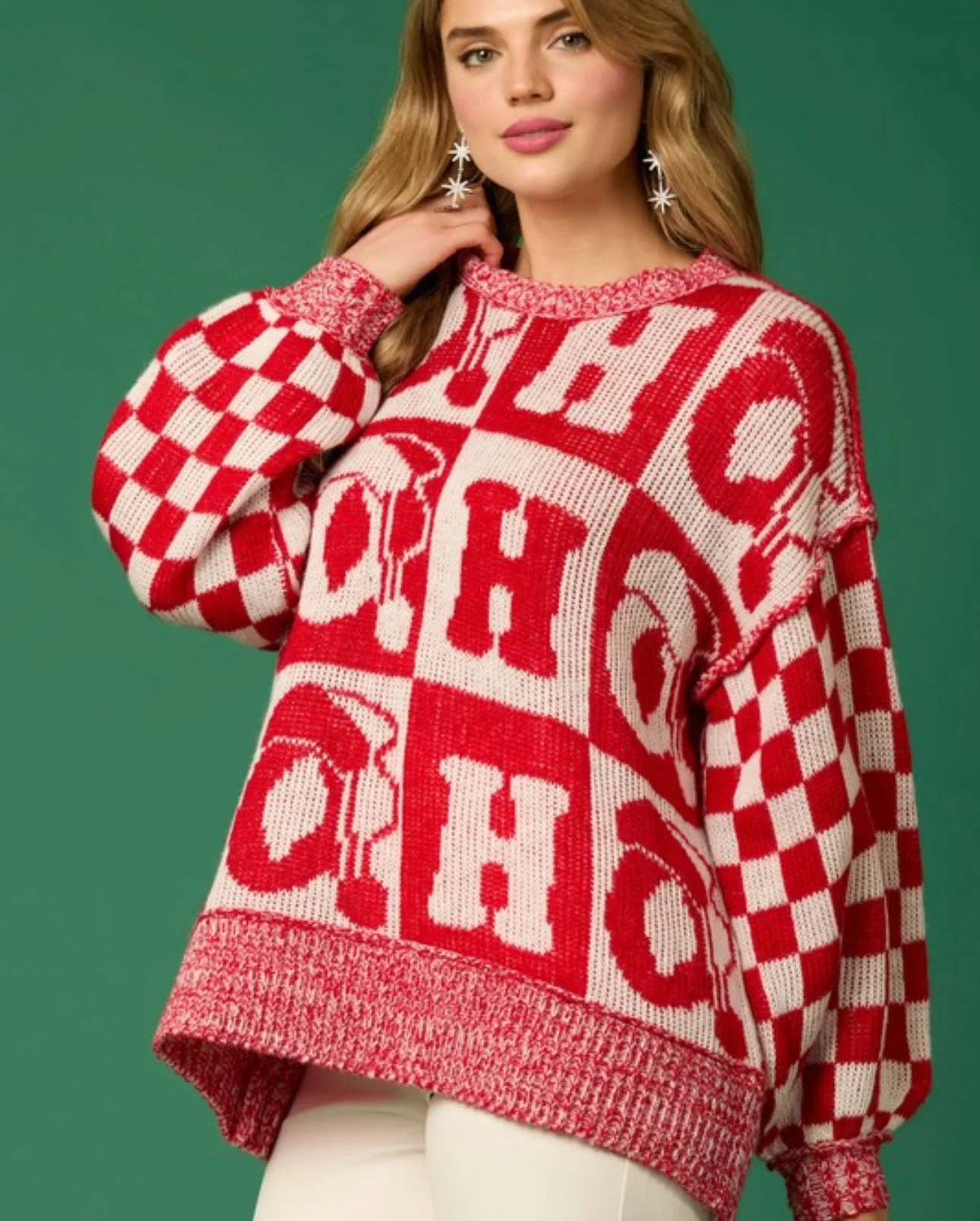 Tops › HoHoHo Colorblock Sweater Image 1 of 3 Image 2 of 3 Image 3 of 3 HoHoHo Colorblock Sweater $42.00 Runs Oversized Size: Small Medium Large Quantity: Add To Cart Added! Runs Oversized